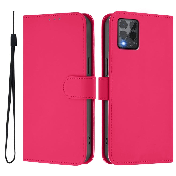 Funda de Cuero con Cordón para T-Mobile Revvl 6 Pro 5G y 6X Pro 5G (Rosa Rojo)