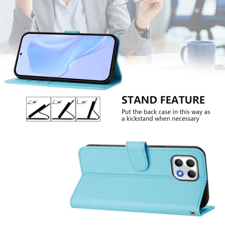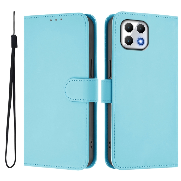 Funda de Cuero con Cordón para Teléfono T-Mobile Revvl 7 5G con Tacto de Piel (Azul Cielo)
