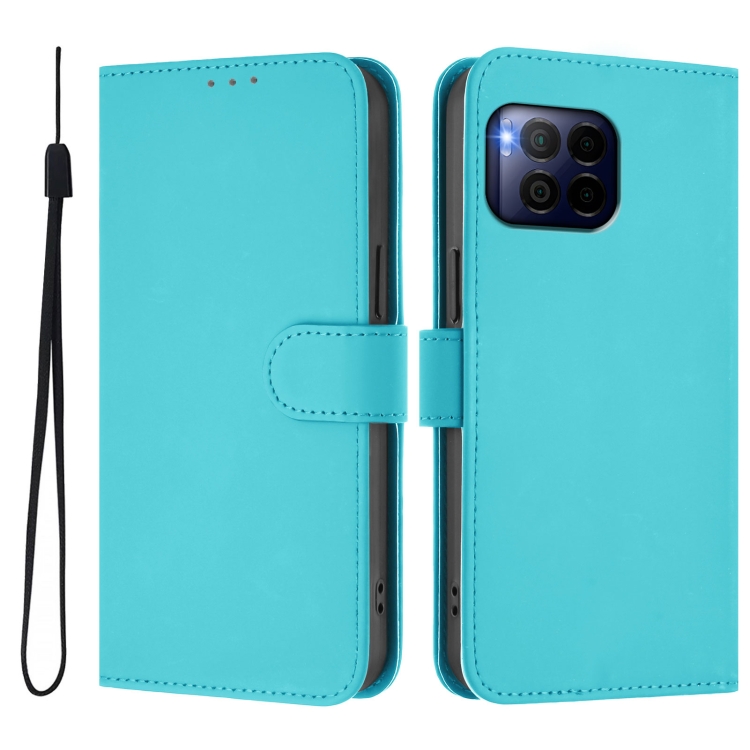 Funda de Cuero con Cordón para Teléfono T-Mobile Revvl 7 Pro 5G (Azul Lago)
