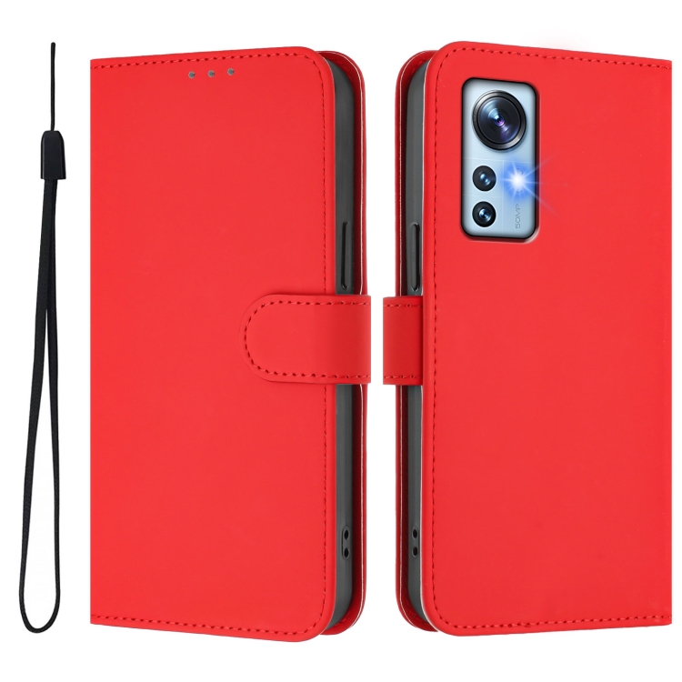 Funda de Cuero con Cordón para Teléfono Xiaomi 12 5G / 12S 5G / 12X 5G con Tacto de Piel de Color Sólido (Rojo)