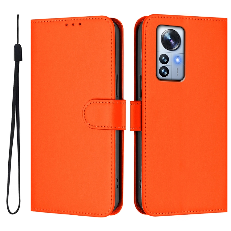 Funda de Cuero con Cordón para Teléfono Xiaomi 12S Pro / 12 Pro Skin Feel de Color Sólido (Naranja)