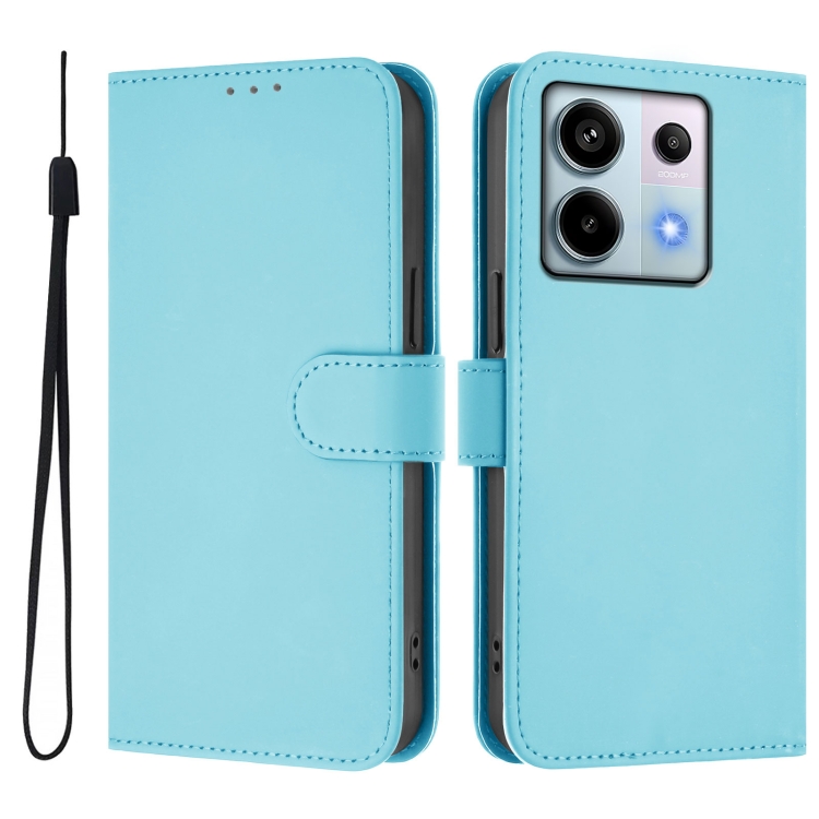 Funda de Cuero con Cordón para Teléfono Xiaomi Poco X6 5G con Sensación de Piel Global En Color Sólido (Azul Cielo)