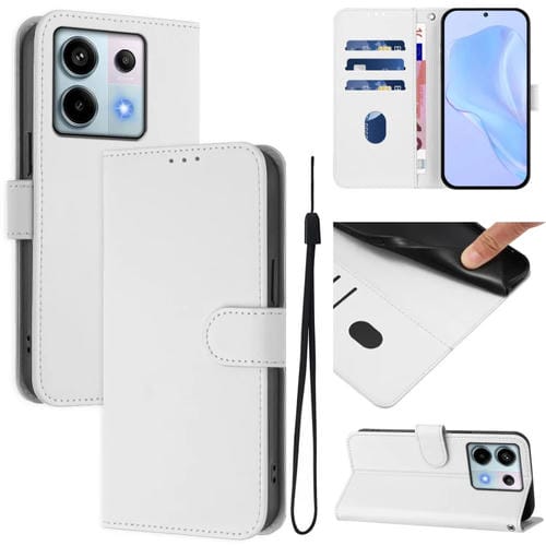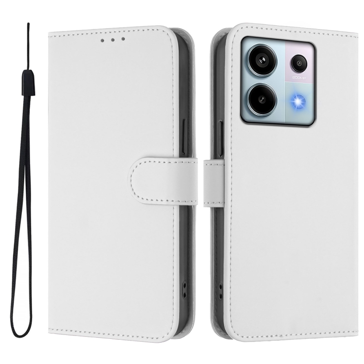 Funda de Cuero con Cordón para Teléfono Xiaomi Poco X6 5G con Sensación de Piel Global En Color Sólido (Blanco)