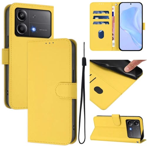 Funda de Cuero con Cordón para Teléfono Xiaomi Poco X6 Neo 5G con Sensación de Piel Global En Color Sólido (Amarillo Limón)
