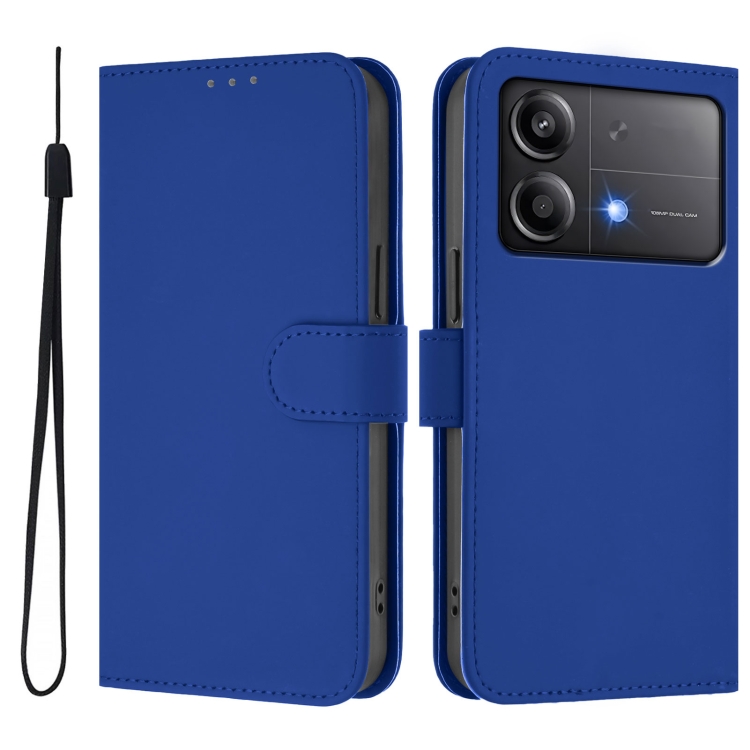 Funda de Cuero con Cordón para Teléfono Xiaomi Poco X6 Neo 5G con Sensación de Piel Global En Color Sólido (Azul Oscuro)