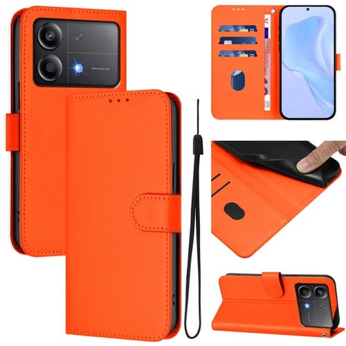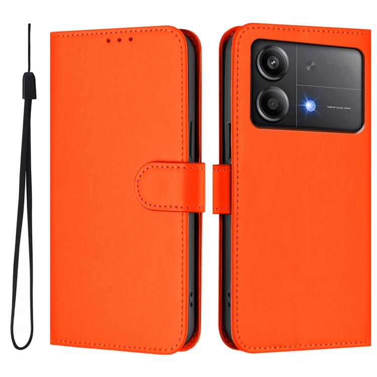 Funda de Cuero con Cordón para Teléfono Xiaomi Poco X6 Neo 5G con Sensación de Piel Global En Color Sólido (Naranja)