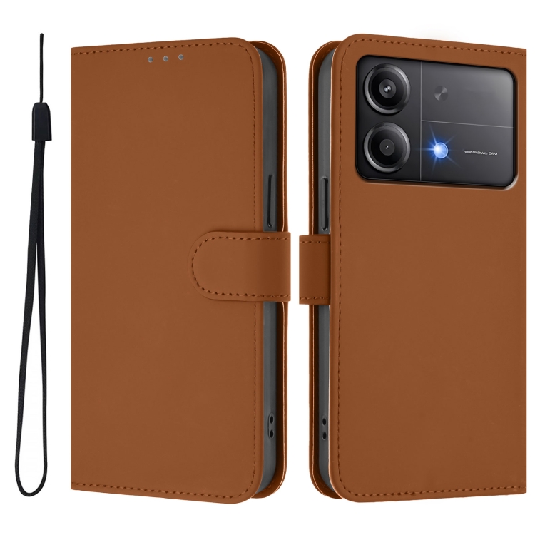 Funda de Cuero con Cordón para Teléfono Xiaomi Poco X6 Neo 5G con Tacto de Piel de Color Sólido (Marrón)