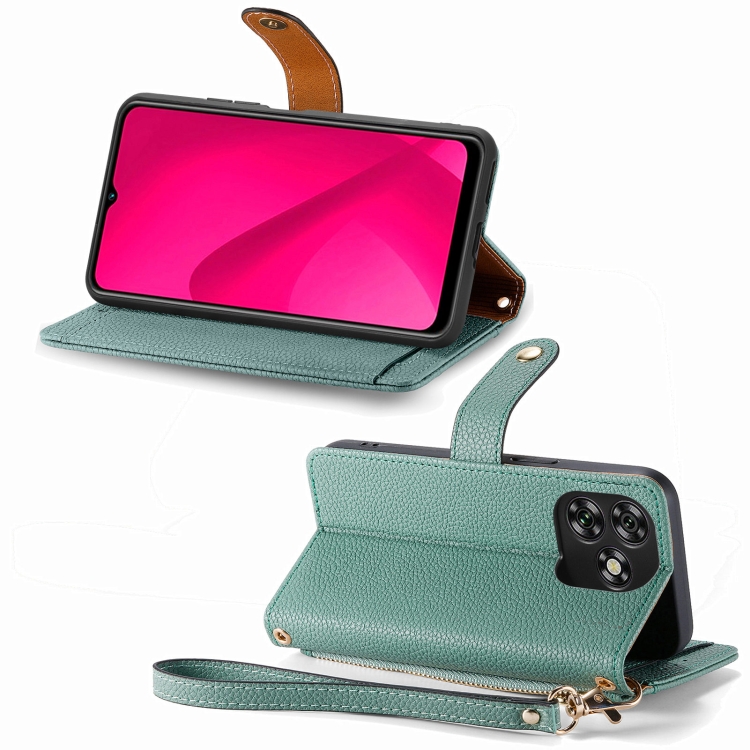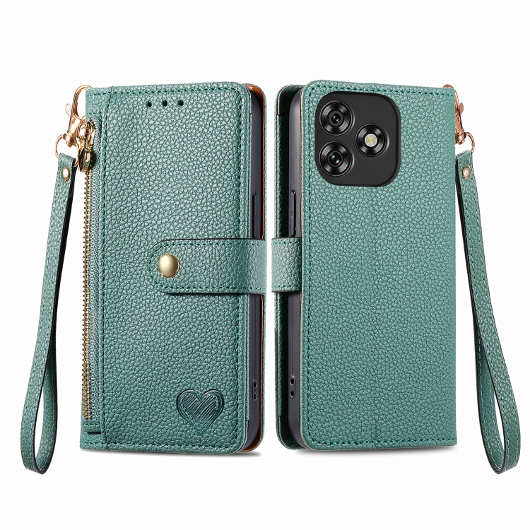 Funda de Cuero con Cordón y Cremallera Love para Oukitel C53 (Verde)