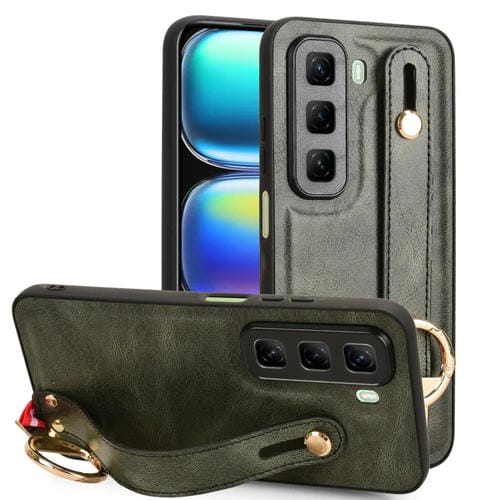 Funda de Cuero con Correa para el Cuello para Infinix Hot 50 5G (Verde)
