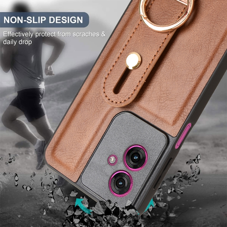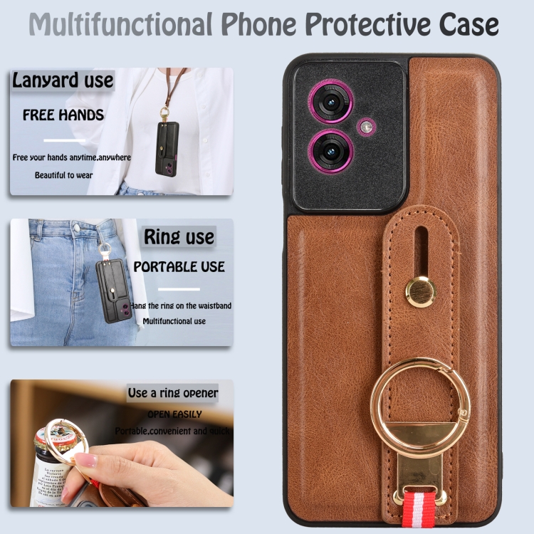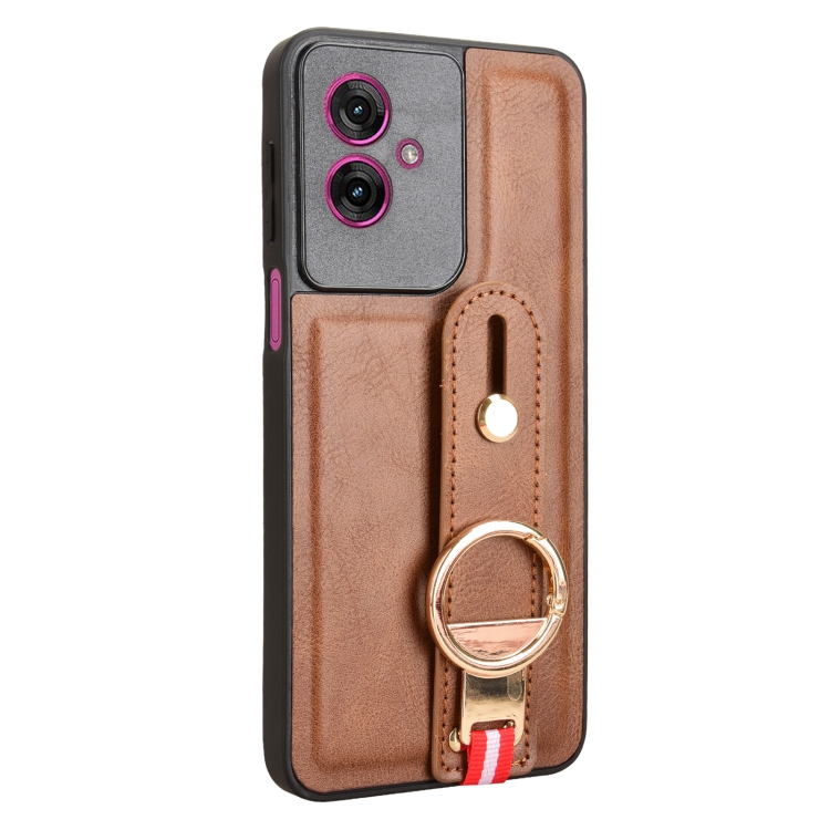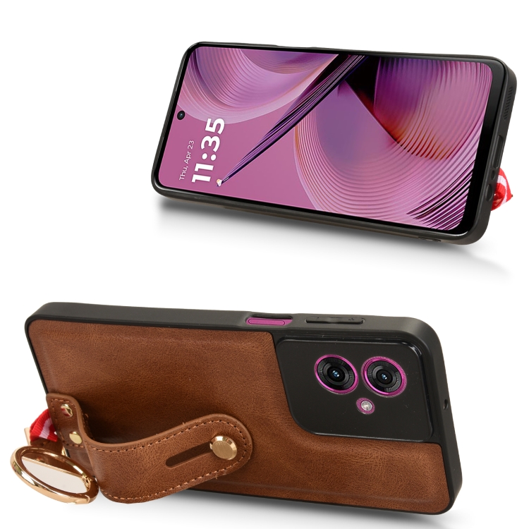Funda de Cuero con Correa para el Cuello Motorola Moto G55 5G (Marrón)