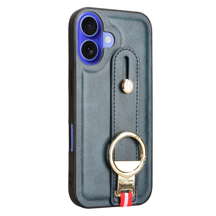 Funda de Cuero con Correa para la Muñeca para iPhone 16 (Azul)