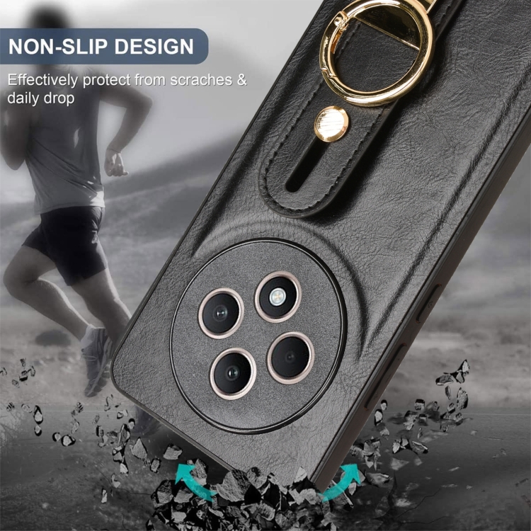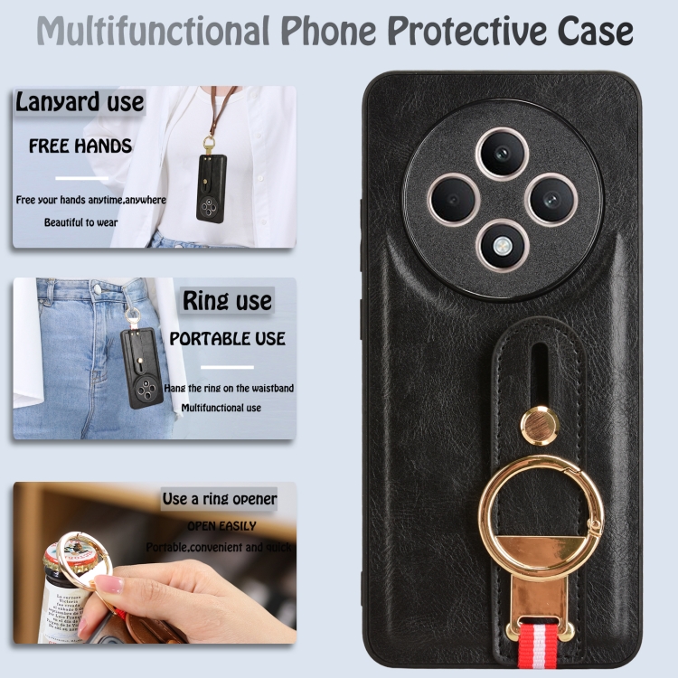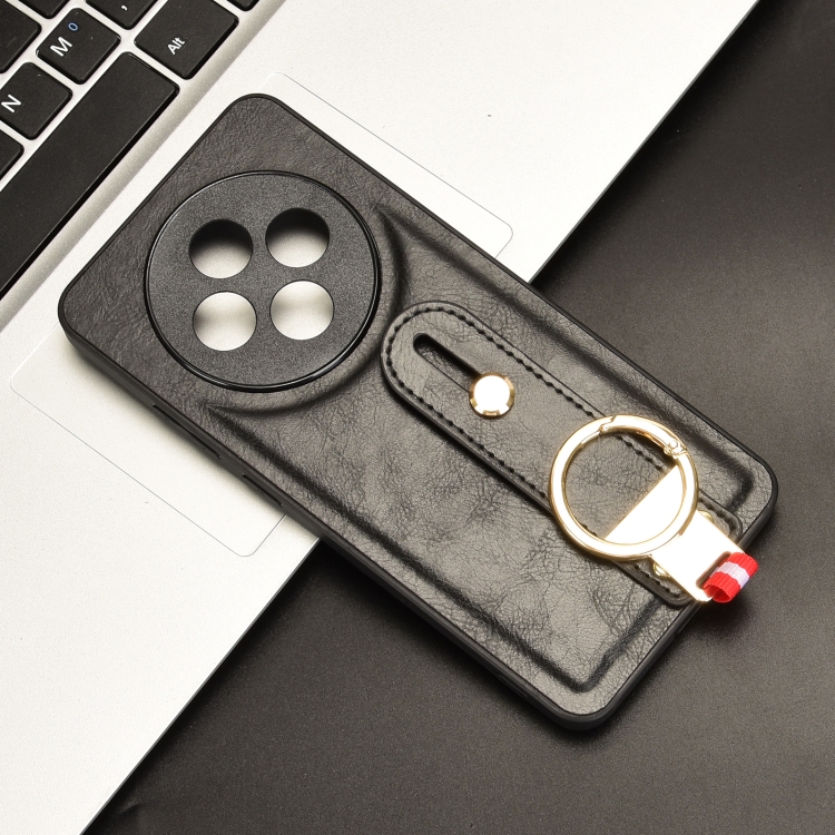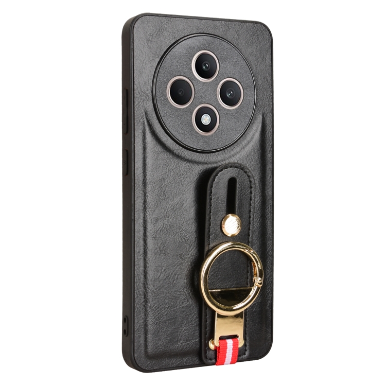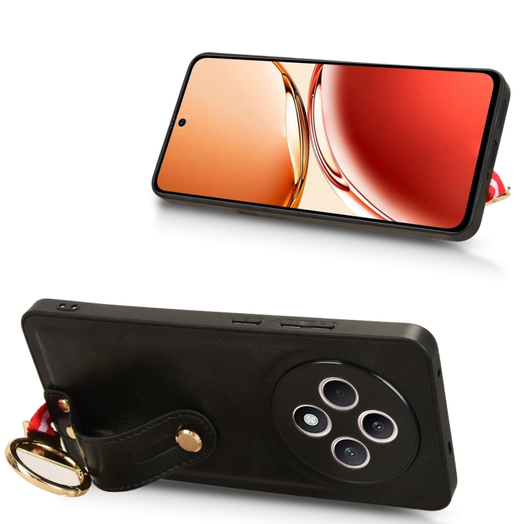 Funda de Cuero con Correa para la Muñeca para Oppo Reno12 F 5G (Negra)