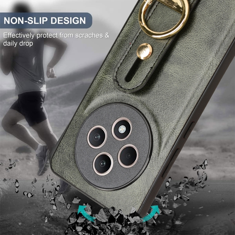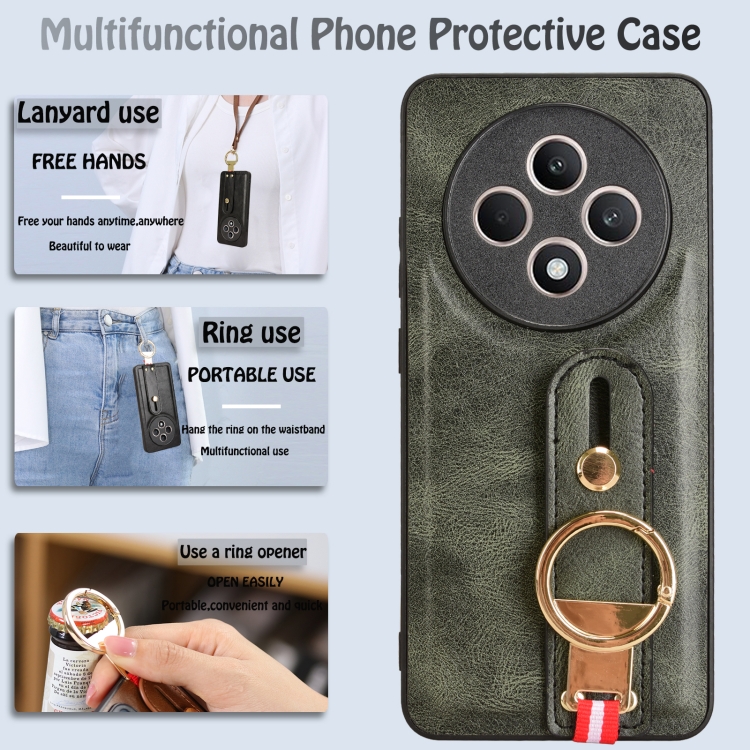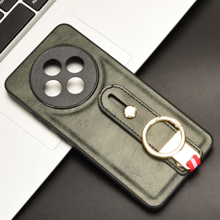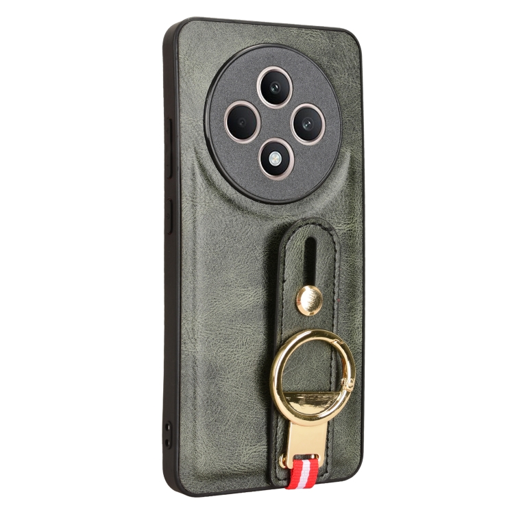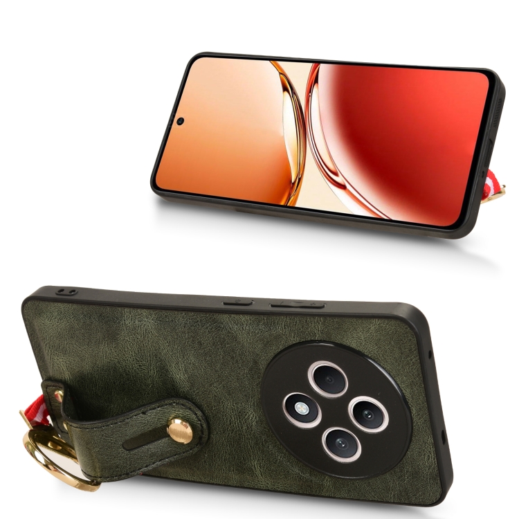 Funda de Cuero con Correa para la Muñeca para Oppo Reno12 F 5G (Verde)