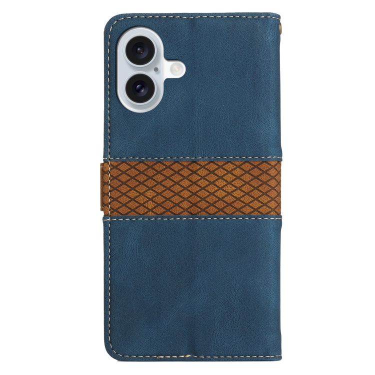 Funda de Cuero iPhone 16 Costuras en Cuadrícula con Cordón (Azul)
