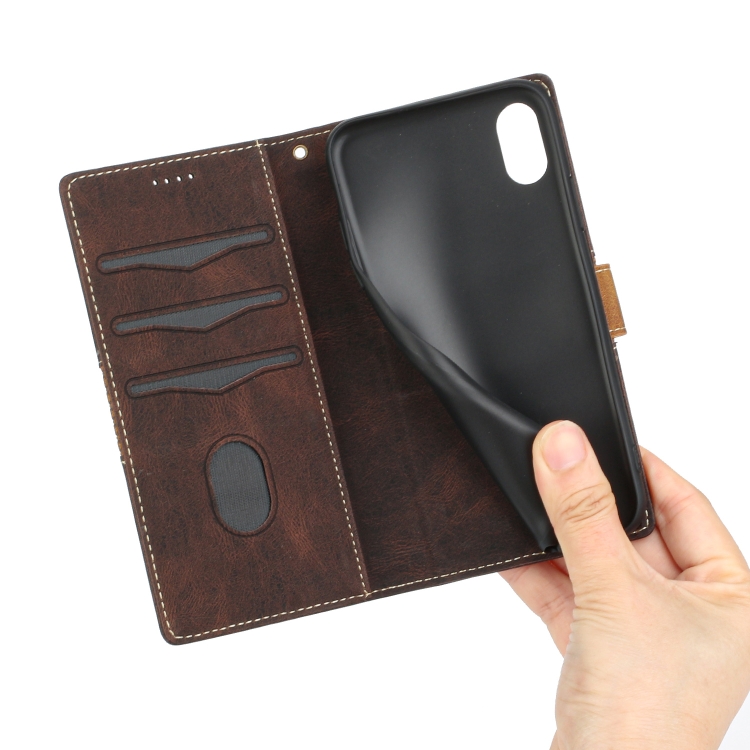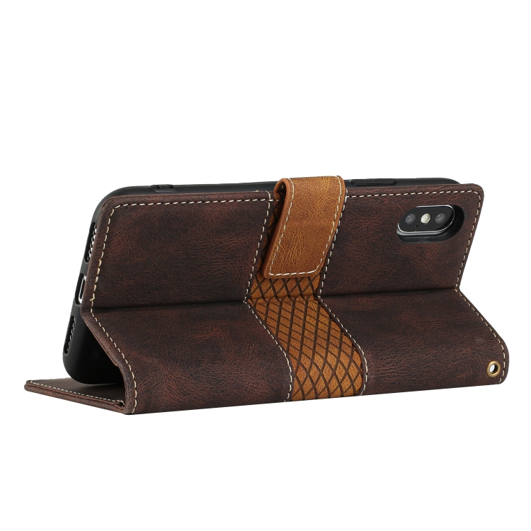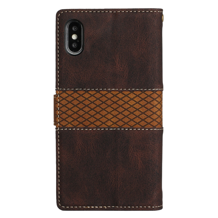 Funda Cuero iPhone Xs Max Costuras Cuadrícula Cordón (Marrón)