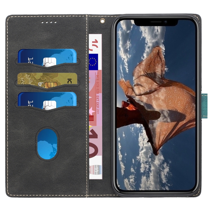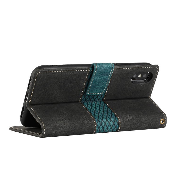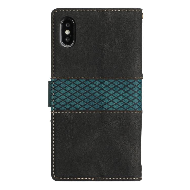 Funda de Cuero para iPhone Xs Max con Costuras en Cuadrícula y Cordón (Negro)