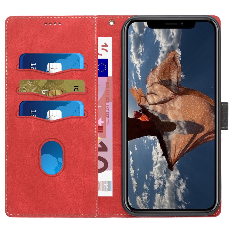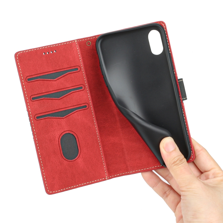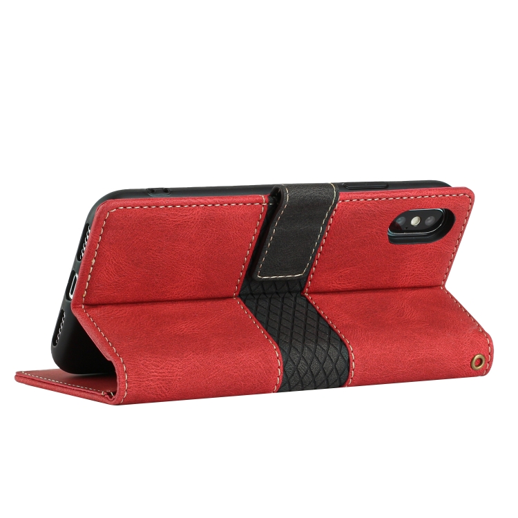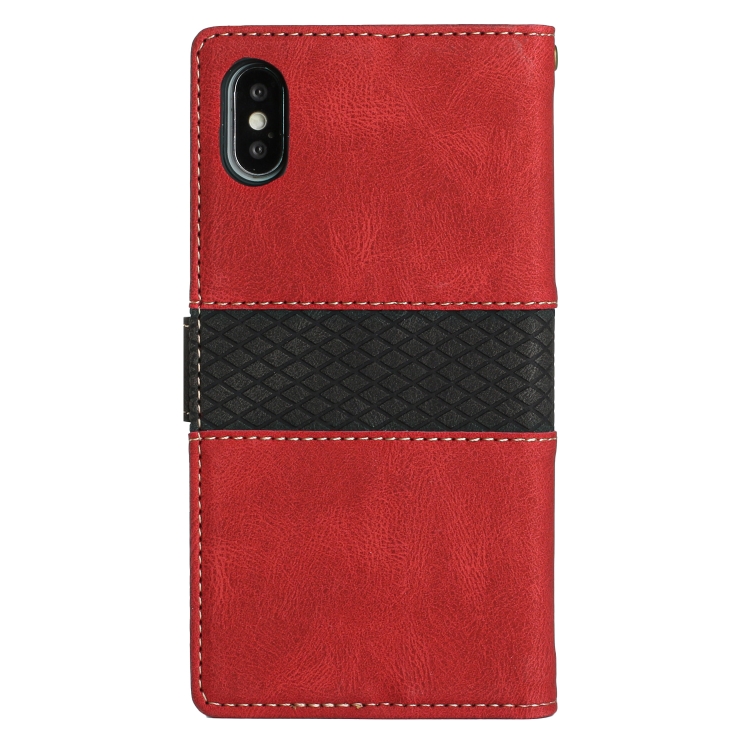 Funda de Cuero con Costuras en Cuadrícula y Cordón para iPhone Xs Max (Rojo)