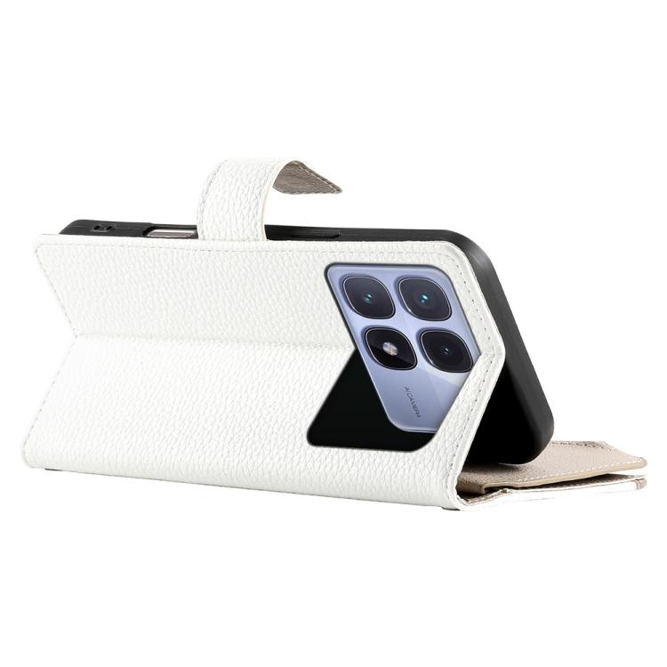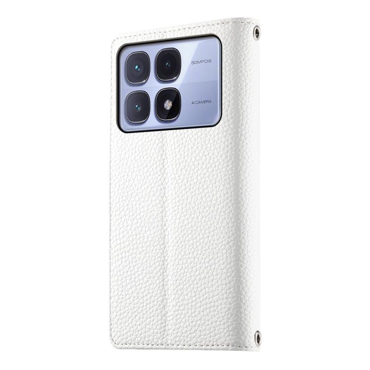 Funda de cuero con cremallera para Redmi K70 Ultra, con múltiples tarjetas y costuras, con correa corta (blanca)