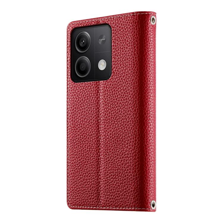 Funda de cuero con cremallera para Redmi Note 13 5G, con costuras globales, múltiples tarjetas y correa corta (roja)