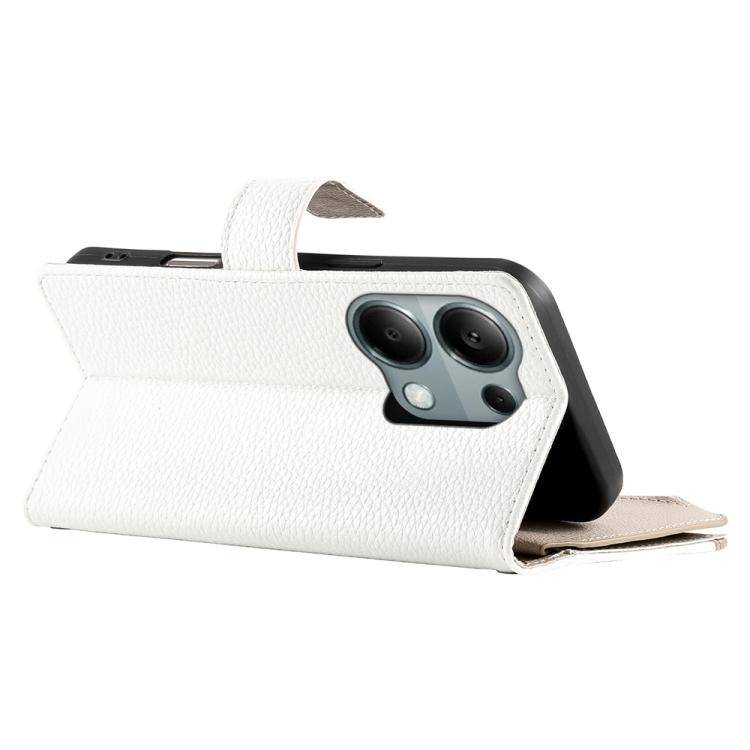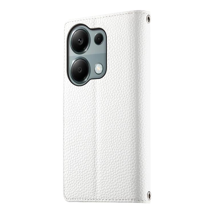 Funda de cuero con cremallera para Redmi Note 13 Pro 4G / Poco M6 Pro, con costuras, para múltiples tarjetas y correa corta (blanca)