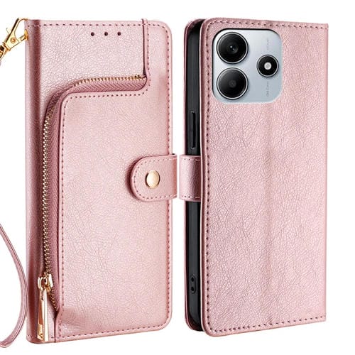 Funda de Cuero con Cremallera para Redmi Note 14 5G (Oro Rosa)