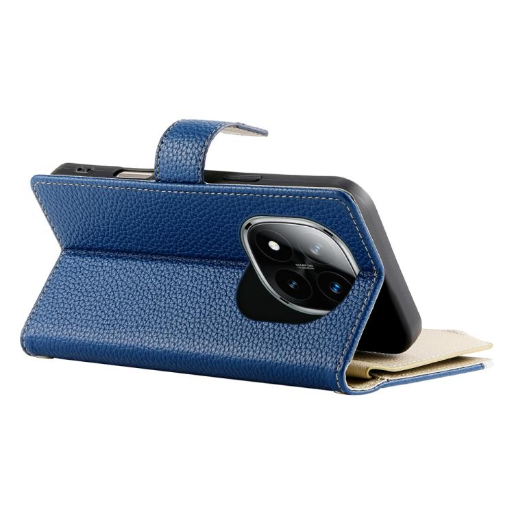 Funda de cuero con cremallera para Redmi Note 14 Pro 4G, con costuras, para múltiples tarjetas y correa corta (azul oscuro)