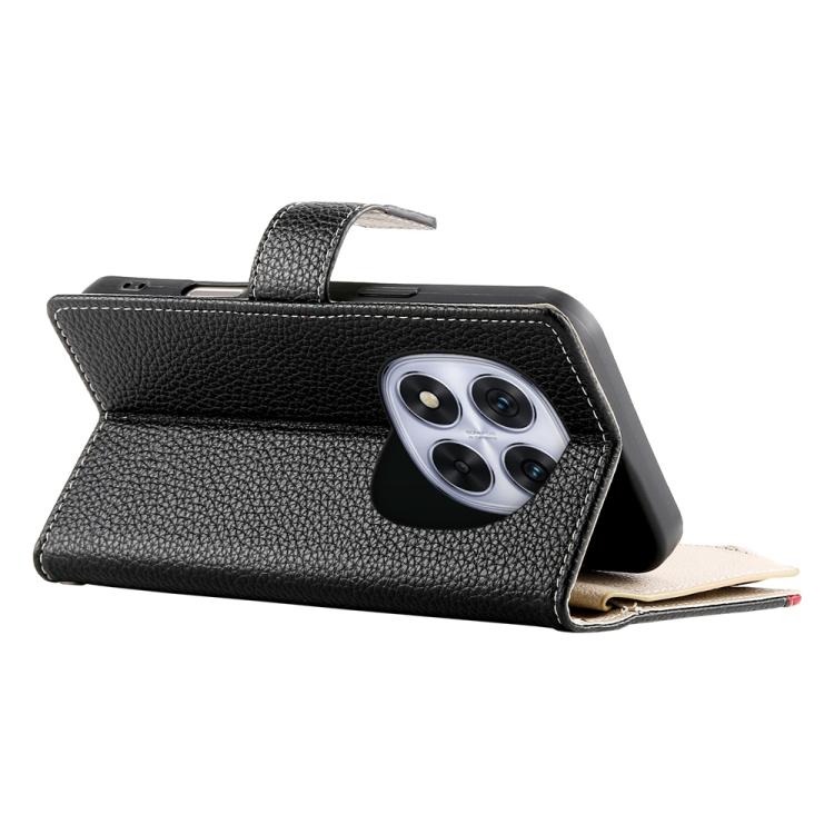 Funda de cuero con cremallera para Redmi Note 14 Pro 5G / Note 14 Pro+ 5G, con costuras, para múltiples tarjetas y correa corta (negra)
