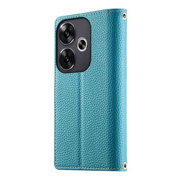 Funda de cuero con cremallera para Redmi Turbo 3 y Xiaomi Poco F6, con costuras, para múltiples tarjetas y correa corta (azul)