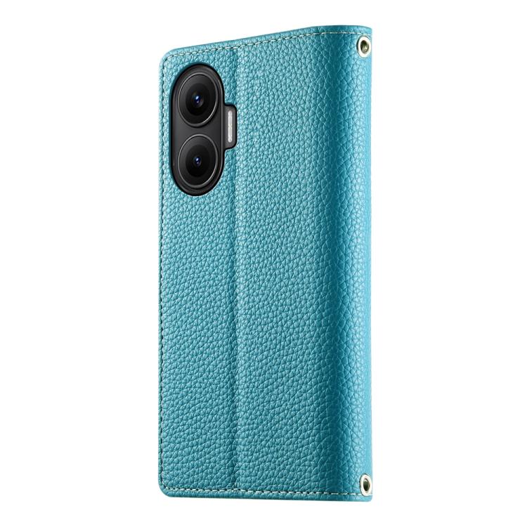 Funda de cuero con cremallera para Redmi Turbo 4 Pro y Xiaomi Poco F7, con costuras, múltiples tarjetas y correa corta (azul)