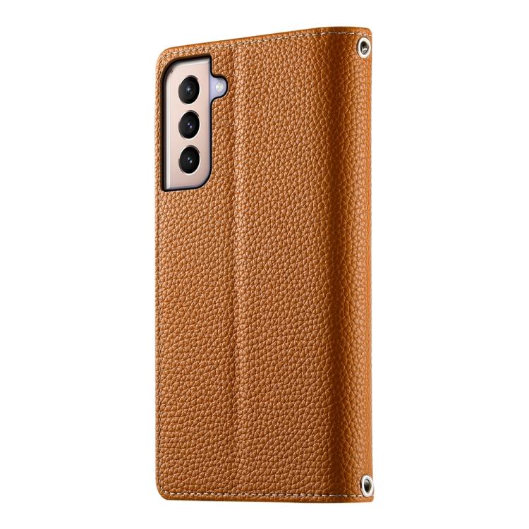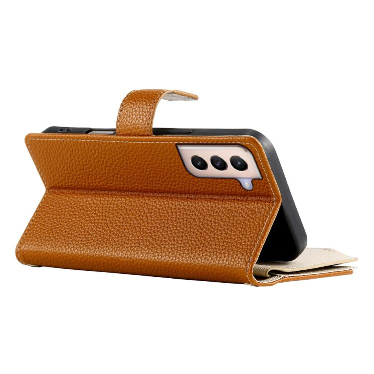 Funda de cuero con cremallera para Samsung Galaxy S21+ 5G, con costuras, para múltiples tarjetas y correa corta (marrón)