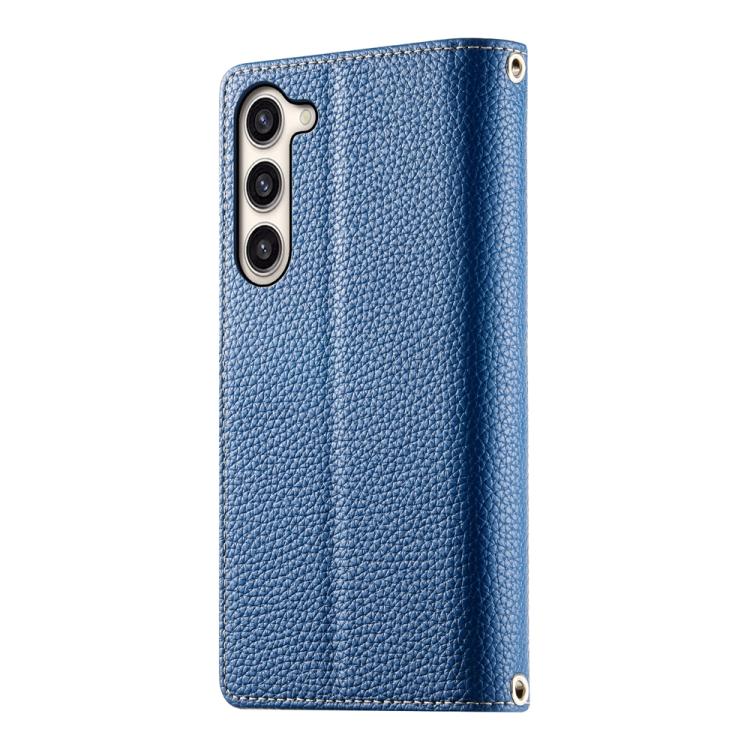 Funda de cuero con cremallera para Samsung Galaxy S23+ 5G, con costuras, para múltiples tarjetas y correa corta (azul oscuro)