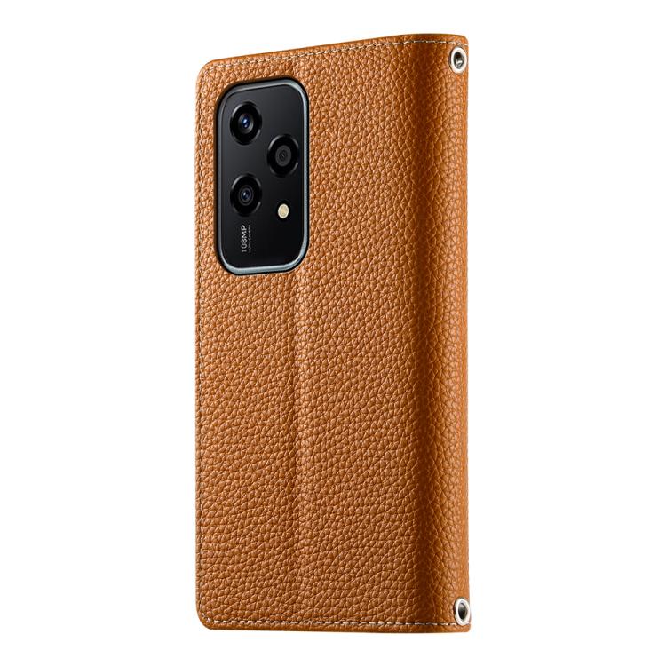 Funda de cuero con cremallera para teléfono con múltiples tarjetas y costuras globales para Honor 200 Lite (marrón)