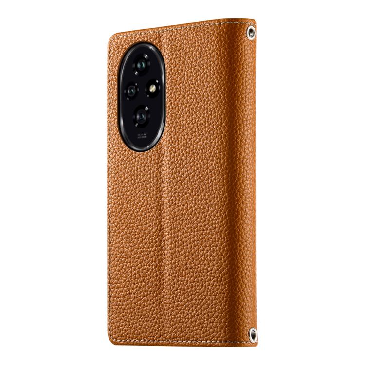 Funda de cuero con cremallera para teléfono con múltiples tarjetas y costuras para Honor 200 (marrón)