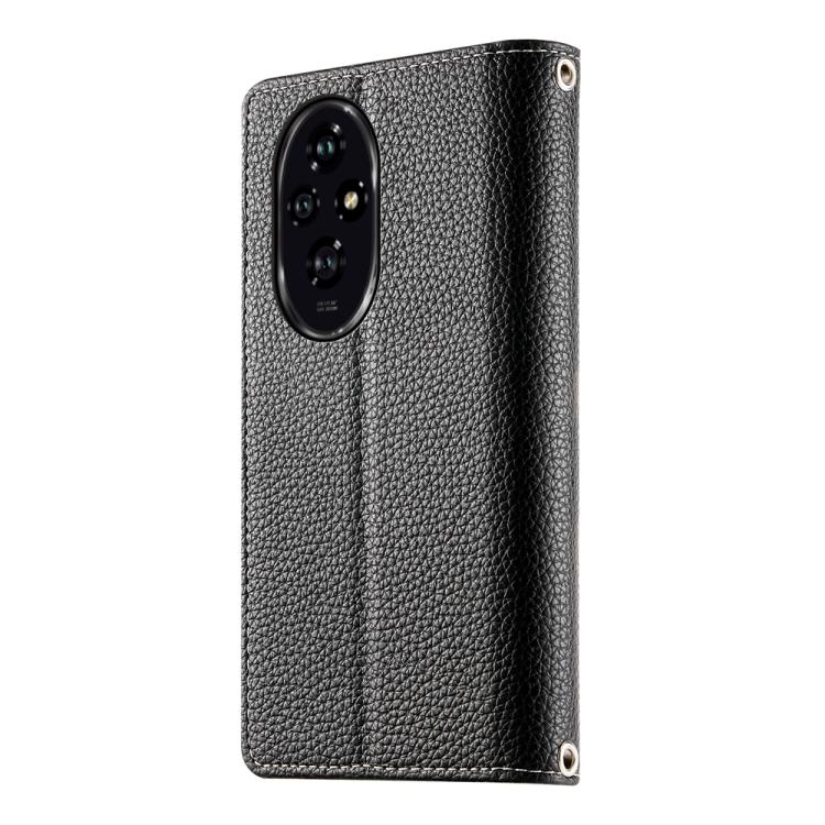 Funda de cuero con cremallera para teléfono con múltiples tarjetas y costuras para Honor 200 (negro)
