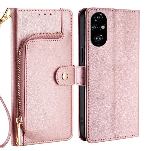 Funda de Cuero con Cremallera para Honor 200 Pro 5G (Oro Rosa)