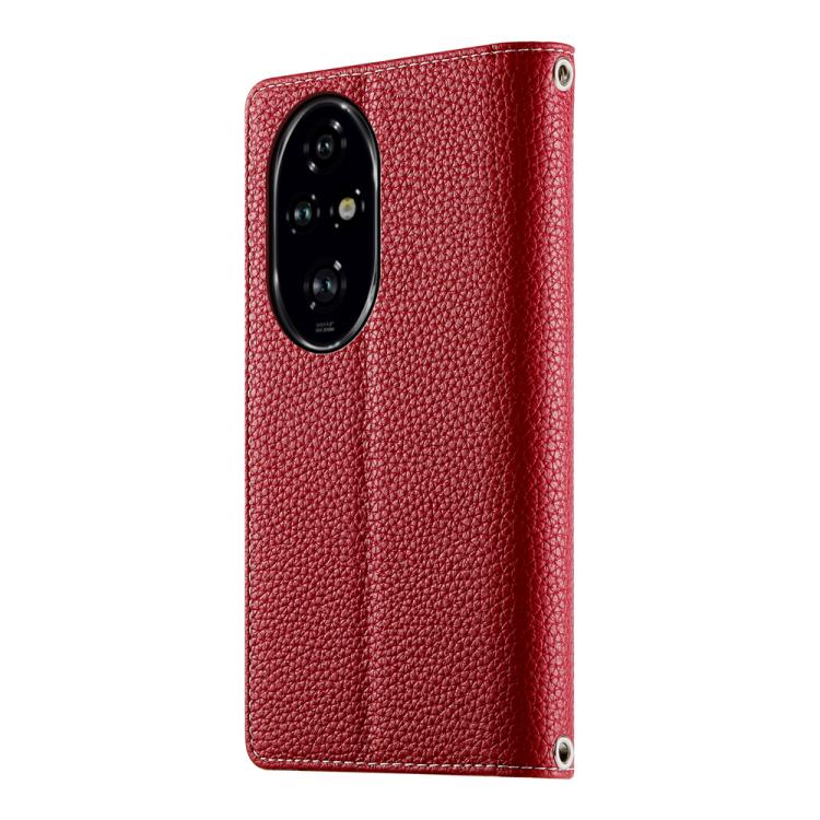Funda de cuero con cremallera para teléfono Honor 200 Pro, con costuras, múltiples tarjetas y correa corta (roja)