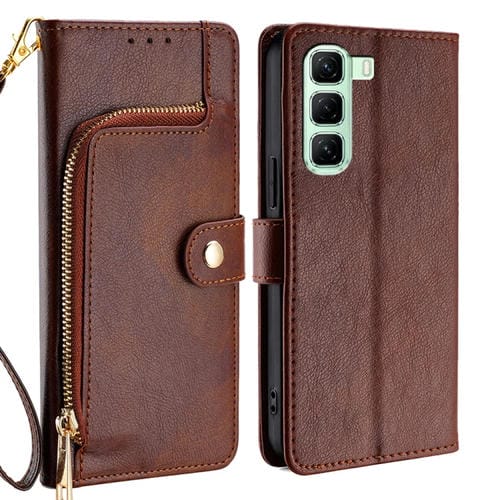 Funda de Cuero con Cremallera para Teléfono Infinix Hot 50 5G (Marrón)