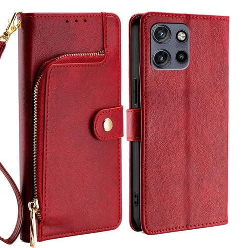 Funda de Cuero con Cremallera para Motorola Edge 50 Neo 5G (Rojo)