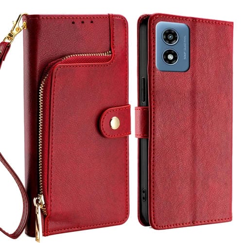 Funda de Cuero con Cremallera para Motorola Moto G 5G (2024) (Rojo)