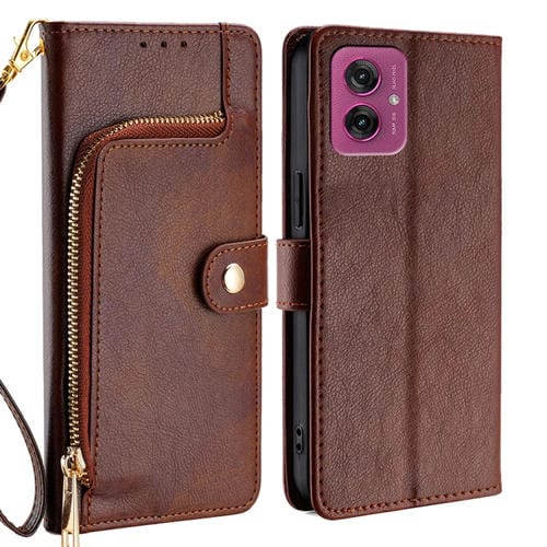 Funda de Cuero con Cremallera para Motorola Moto G55 5G (Marrón)