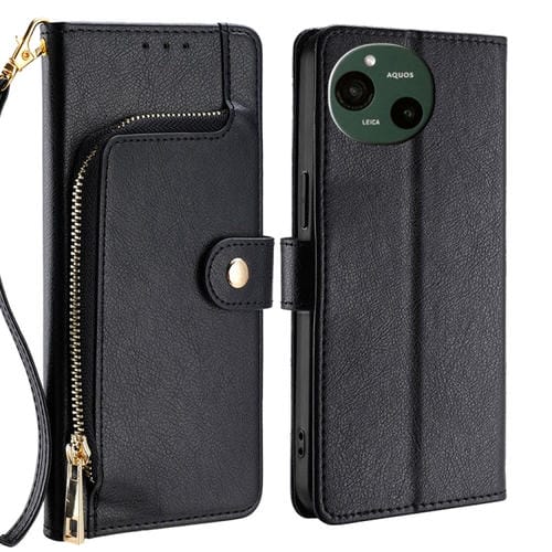 Funda de Cuero con Cremallera para Teléfono Sharp Aquos R9 (Negro)