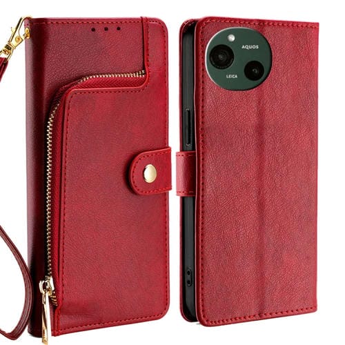 Funda de Cuero con Cremallera para Teléfono Sharp Aquos R9 (Rojo)