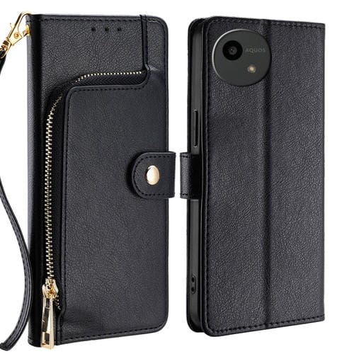 Funda de Cuero con Cremallera para Teléfono Sharp Aquos Wish4 (Negra)