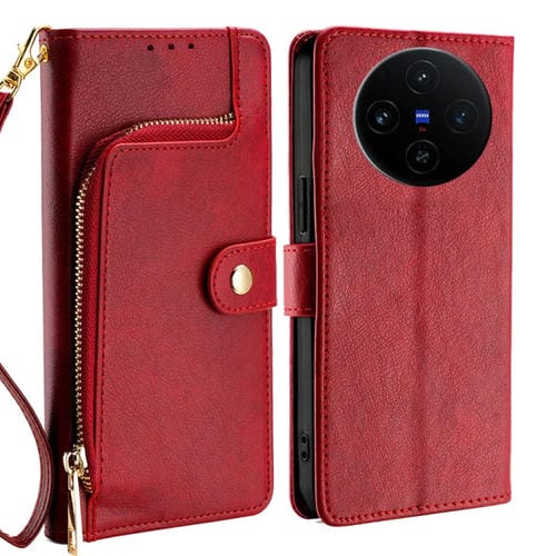 Funda de Cuero con Cremallera para Teléfono Vivo X100S (Rojo)