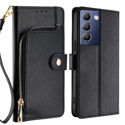 Funda de Cuero con Cremallera para Teléfono Vivo Y100 5G Idn (Negra)