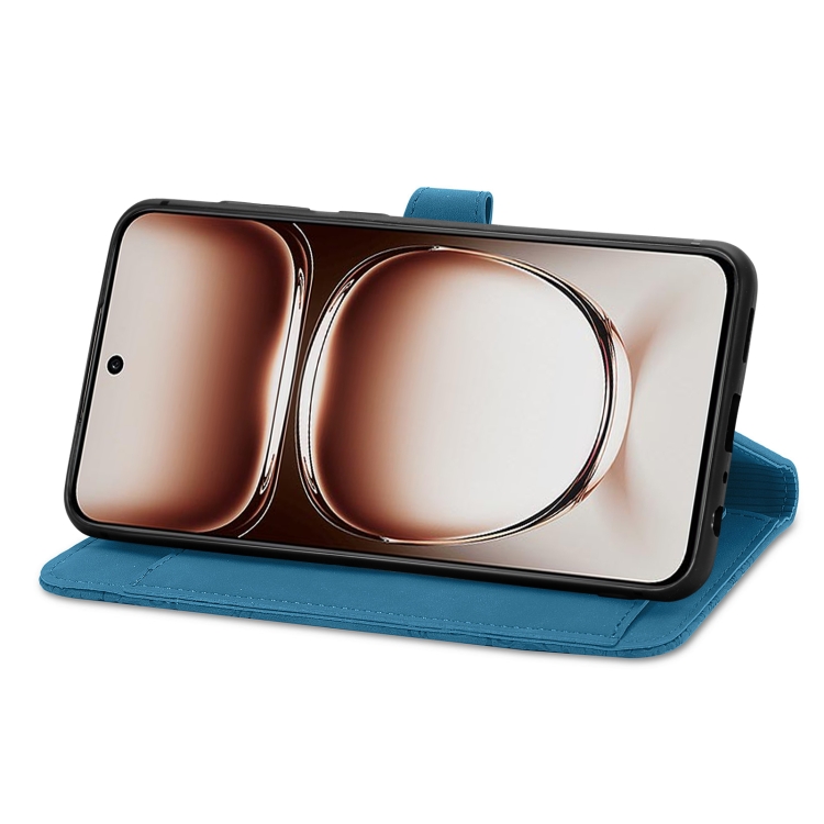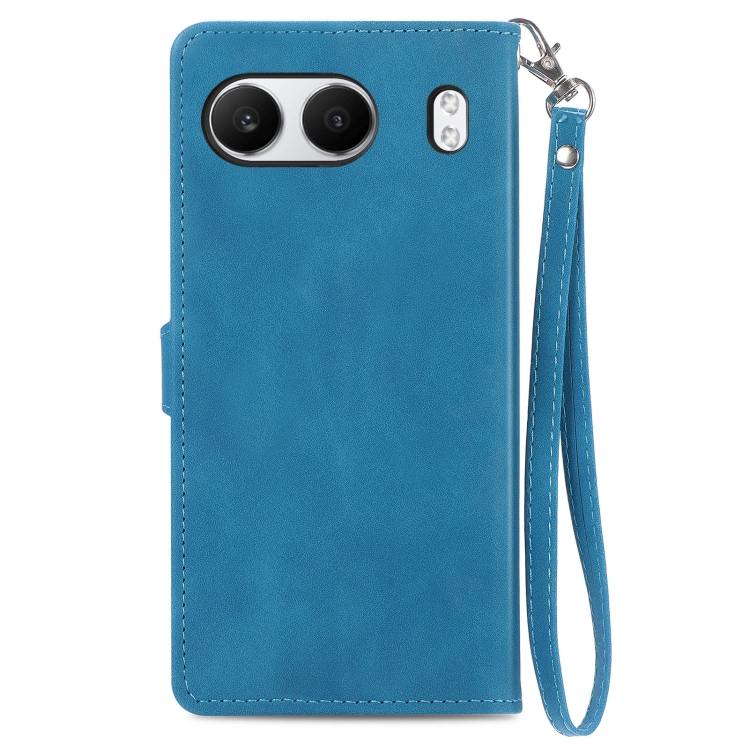 Funda de Cuero con Cremallera y Diseño de Flores en Relieve para OnePlus Nord 4 (Azul)
