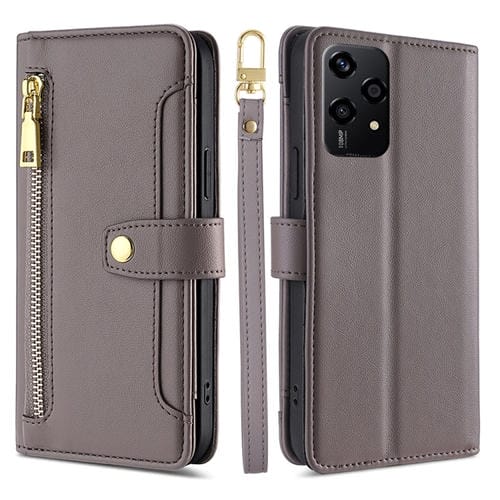 Funda de Cuero con Cremallera y Diseño de Ovejas para Honor 200 Lite 5G (Gris)