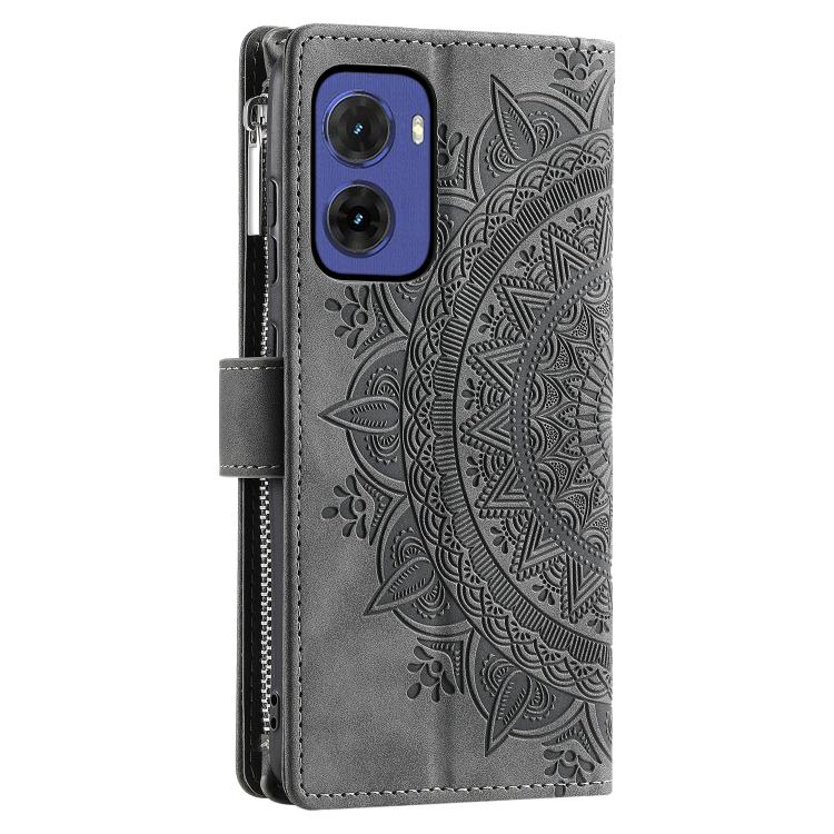 Funda de Cuero con Cremallera y Múltiples Tarjetas para Motorola Moto G05 (Gris)