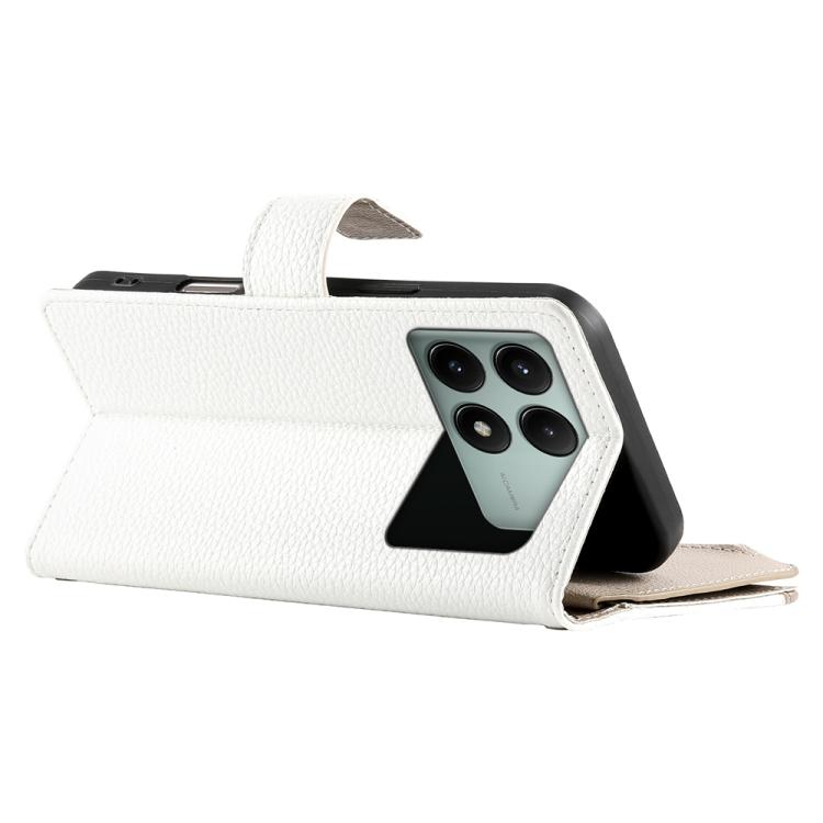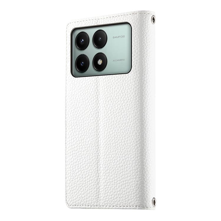 Funda de cuero con cremallera y múltiples tarjetas para Redmi K70E/Xiaomi Poco X6 Pro, con costuras y correa corta (blanca)