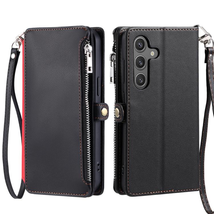 Funda de cuero con cremallera y ranura para múltiples tarjetas para Samsung Galaxy A17 5G (negra)